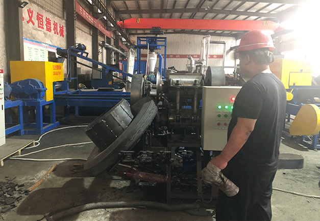 ? ? ? ? ? ? ? ? ? ? ? ? 恒德廠家輪胎粉碎機?生產現(xiàn)場圖